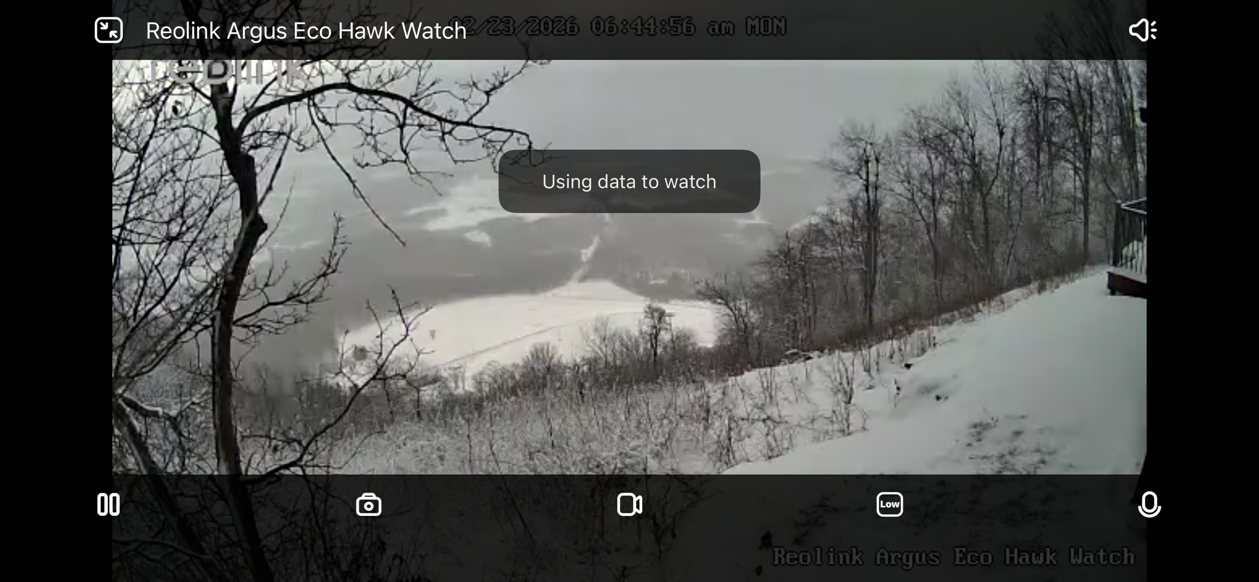Hawk Watch picture taken on Monday, February 23, 2026 - 6:45 a.m. - snowy!